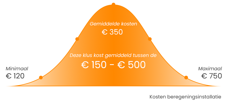 Het laten aanleggen van een beregeningsinstallatie kost gemiddeld € 350. Het systeem zelf kost tussen de € 3 - € 7,50 per vierkante meter.
