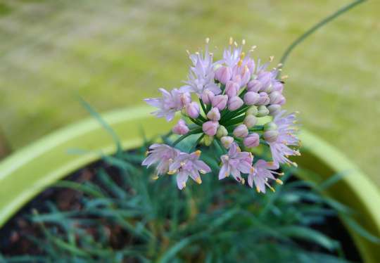 De bloeitijd van een Amerikaanse look ligt in juni en juli en de bloemen zijn paars van kleur.