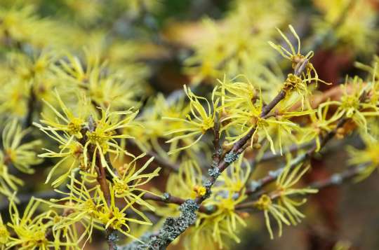 De bloeitijd van een Amerikaanse toverhazelaar ligt in augustus, september en oktober en de bloemen zijn geel van kleur.