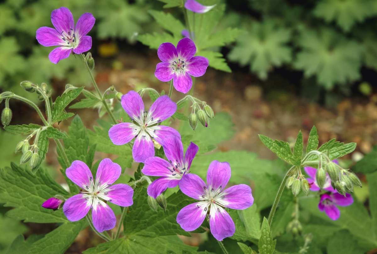De bloeitijd van een Bosooievaarsbek ligt in juni en juli en de bloemen zijn blauw, paars of wit van kleur.