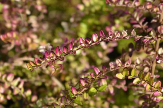 De kleur van de bladeren is geel, deze heester is wintergroen en de volwassen hoogte is ongeveer 30 centimeter.