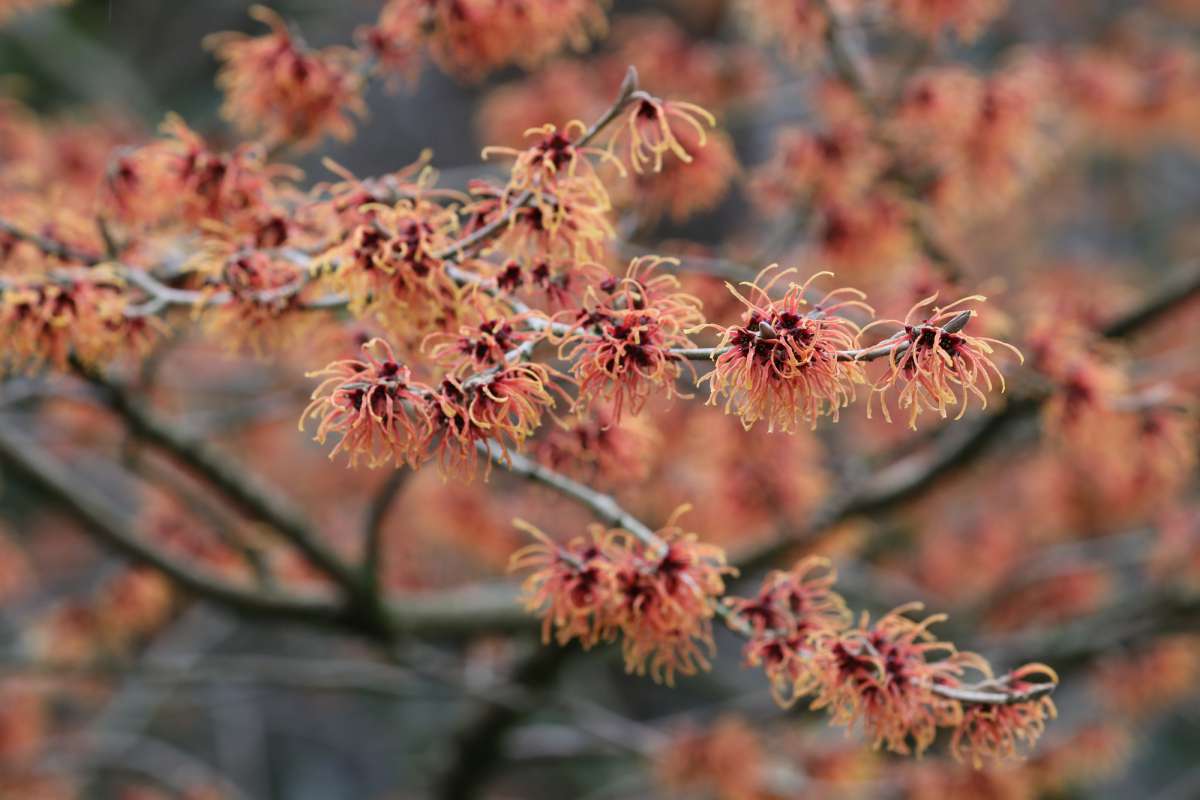 De bloeitijd van een Chinese toverhazelaar ligt in januari, februari en maart en de bloemen zijn geel van kleur.