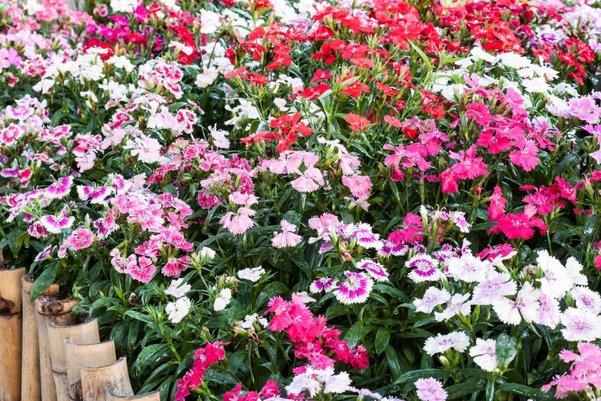 De bloeitijd van een Duizendschoon ligt in juni en juli en de bloemen zijn gemengd van kleur.