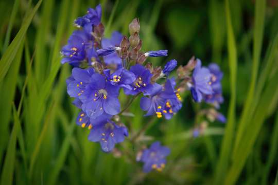 De bloeitijd van een Griekse valeriaan ligt in mei en juni en de bloemen zijn blauw of paars van kleur.