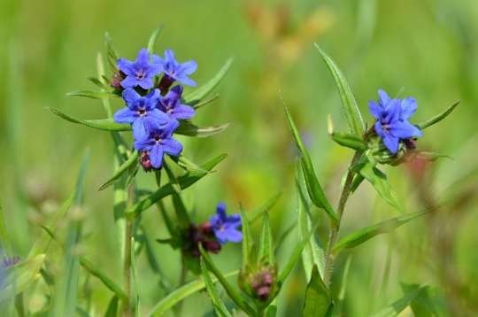 De bloeitijd van een Purper parelzaad ligt in mei en juni en de bloemen zijn blauw van kleur.