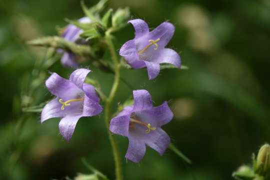 De bloeitijd van een Ruig klokje ligt in juli en augustus en de bloemen zijn blauw, paars of wit van kleur.