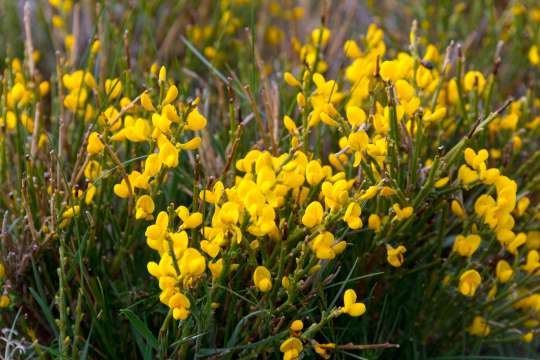 De bloeitijd van een Spaanse brem ligt in mei en de bloemen zijn geel van kleur.
