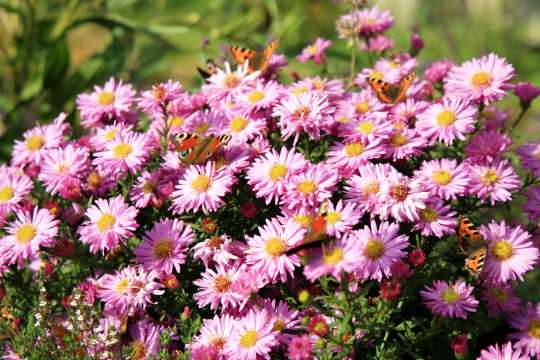 De bloeitijd van een Zomeraster ligt in mei, juni, augustus, september en oktober en de bloemen zijn blauw, roze, paars of oranje van kleur.