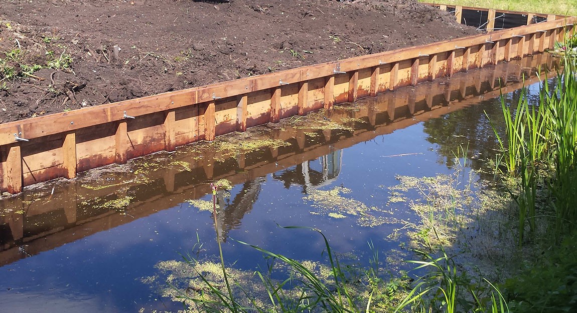 Als uw tuin aan een waterkant grenst is het plaatsen van beschoeiing ook een mooie manier om wat extra ruimte te creeëren. U heeft geen last meer van een aflopende oever, en in combinatie met een vlonder ontstaan er nieuwe mogelijkheden voor uw tuin zoals een terras aan het water of een aanlegplaats voor uw boot.